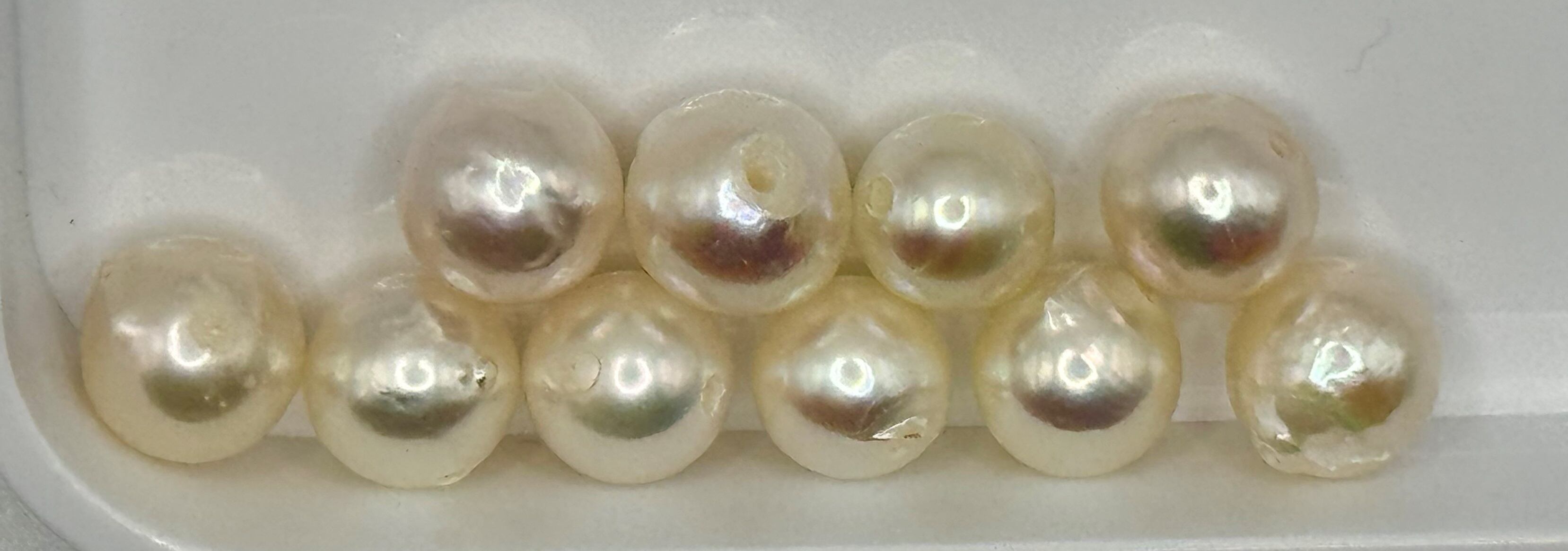 日本産あこや本真珠です。海の中であこや貝がつくる宝石なので、自然で育った証として、表面に傷、凹凸、変形があります。今回第1弾の日本産あこや本真珠は、表面に傷、凹凸、変形等が目立ち規格外となり、ネックレスやピアス、リングに採用されず残った真珠の販売です。そのため真珠には、片穴もしくは両穴が開いています。どうしても傷や凹凸、変形が気になる方は購入をお控えてください。中には掘り出し物の真珠もあります。ハンドメイドで真珠を使用したい方にはおすすめです。傷や凹凸、変形があるとしても本物の真珠です。是非この機会にお求めください。