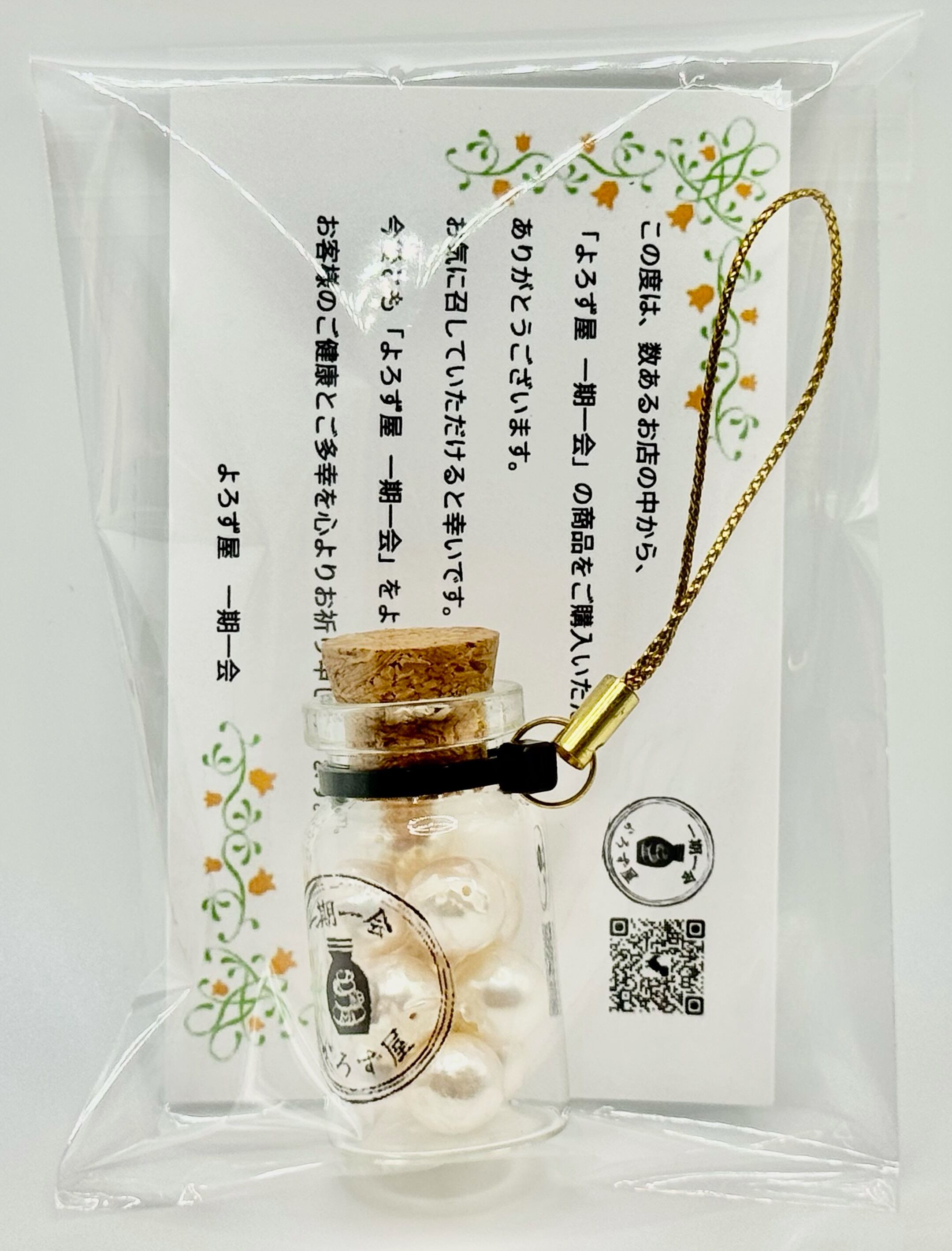 小瓶には、数粒のあこや本真珠が詰め込まれており、そのシンプルな美しさはインテリアや贈り物に最適です。ハンドメイドで仕上げられたこの小瓶は、心のこもった逸品となっており、自分自身へのご褒美や、大切な方へのプレゼントとしても喜ばれることでしょう。