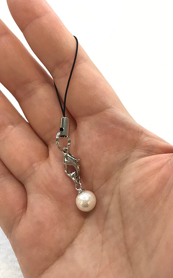 日本産のあこや貝から取り出した天然の真珠1つを使ったストラップです。 真珠の大きさは約7.5mmです。 天然の真珠の証となるシワや凹凸が多少は存在しますのでご了承ください。 ストラップから真珠を外すことができます。手持ちのチェーンに通してペンダントに等にできるストラップです。 日本産あこや本真珠認定書と製品保証書をお付けいたします。 ぜひともこの機会に日本産あこや本真珠ストラップをお買い求めください。